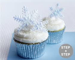 Knead the icing until pliable. On a surface dusted with icing sugar, roll put the icing to thickness for 5 mm / 1/4 inch. Using a 7-cm / 2 3/4-inch fluted cutter, cut out 12 ‘snowflakes’.