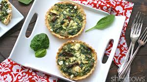 Blanch the spinach in boiling water for just 1 minute, then drain and press to squeeze all the water out. Chop the spinach. Melt the butter in a frying pan, add the spinach and cook gently to evaporate any remaining liquid. Season well with salt and pepper. Stir in the cream and egg yolks. Crumble the cheese and divide between the tarts, top with the spinach mixture and bake for 10 minutes. Scatter the pine kernels over the tartlets and cook for further 5 minutes.